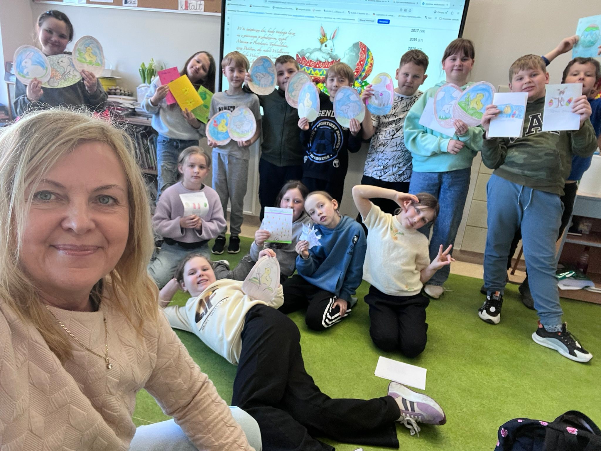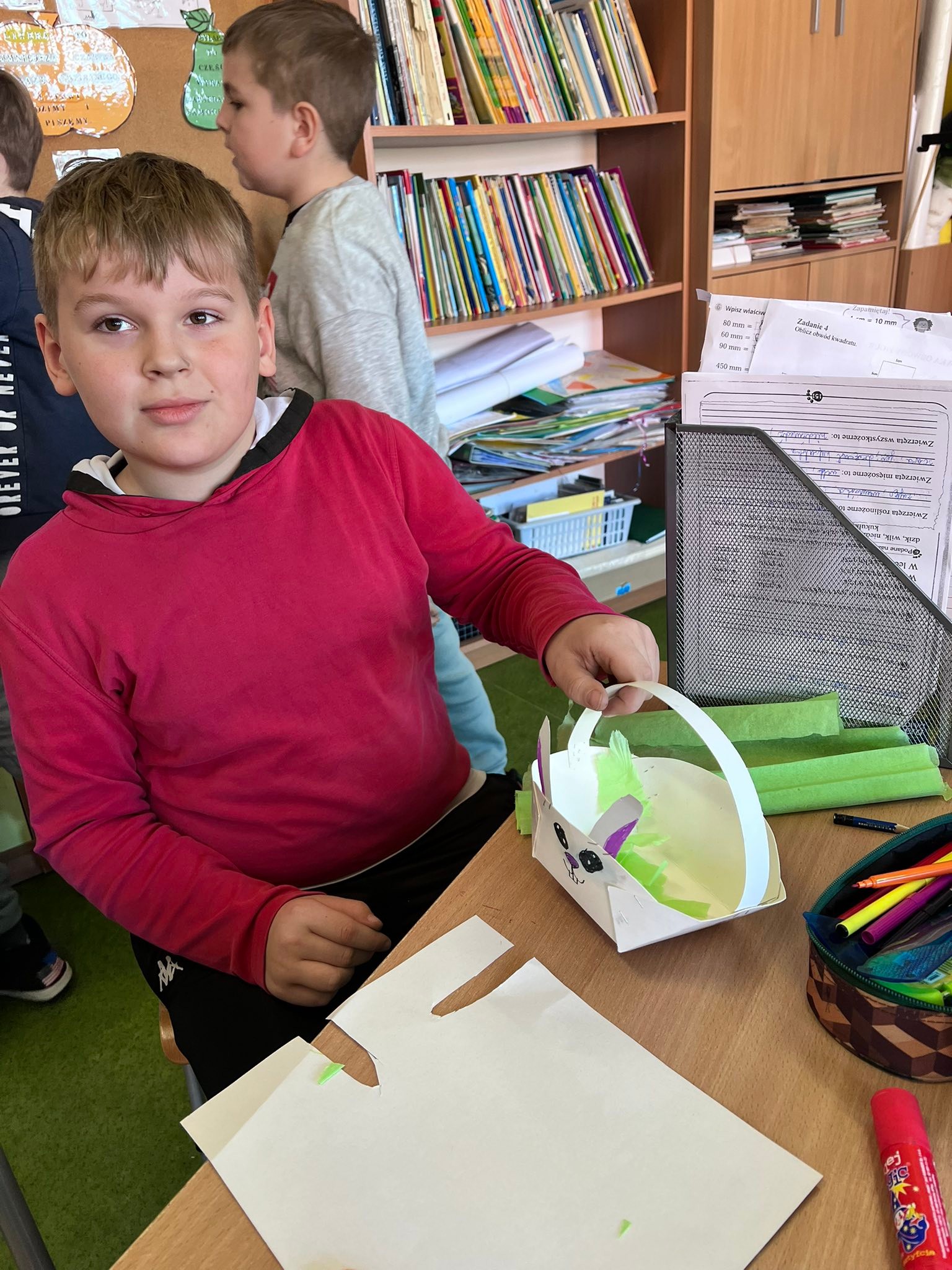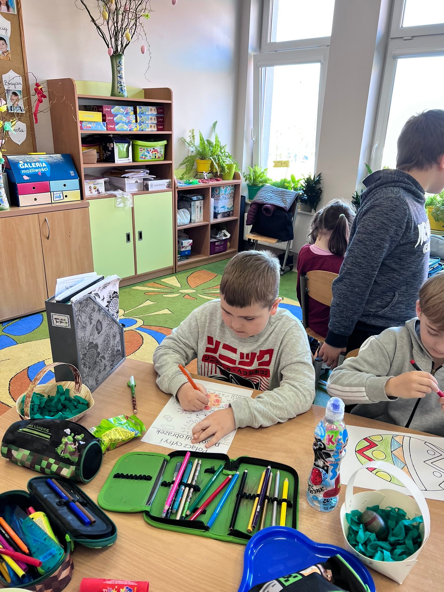 Podczas zajęć omawiały zwyczaje i tradycje wielkanocne, poznając znaczenie symboli świątecznych. Nie zabrakło również działań praktycznych – na zajęciach kreatywnych oraz języka kaszubskiego uczniowie z zaangażowaniem wykonywali prace plastyczno-techniczne. Powstały piękne wielkanocne koszyczki, zajączki, kolorowe pisanki, świąteczne kartki z życzeniami dla rodziców, a także wysiany został owies, który już wkrótce ozdobi świąteczne stoły. 🐰🌱🥚