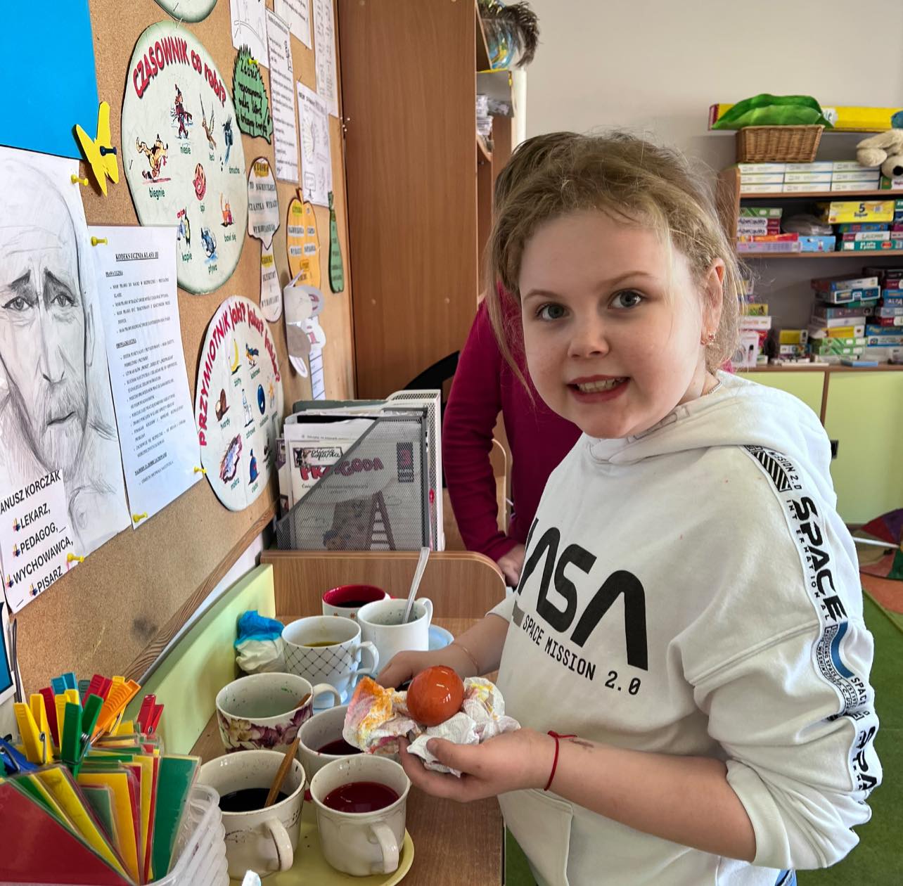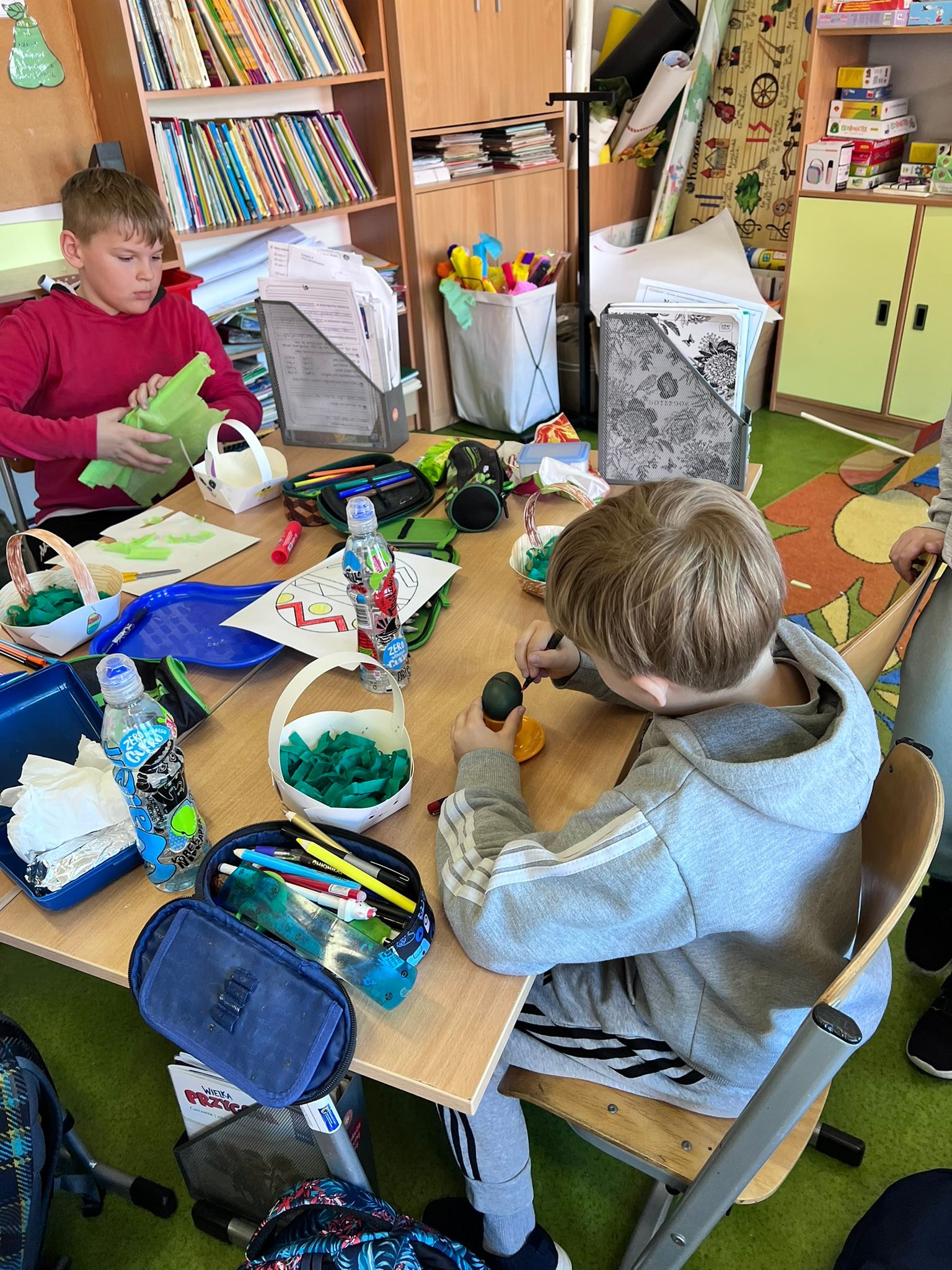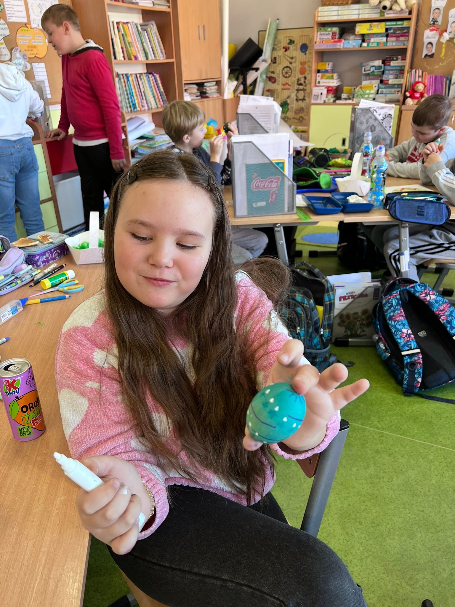 Podczas zajęć omawiały zwyczaje i tradycje wielkanocne, poznając znaczenie symboli świątecznych. Nie zabrakło również działań praktycznych – na zajęciach kreatywnych oraz języka kaszubskiego uczniowie z zaangażowaniem wykonywali prace plastyczno-techniczne. Powstały piękne wielkanocne koszyczki, zajączki, kolorowe pisanki, świąteczne kartki z życzeniami dla rodziców, a także wysiany został owies, który już wkrótce ozdobi świąteczne stoły. 🐰🌱🥚