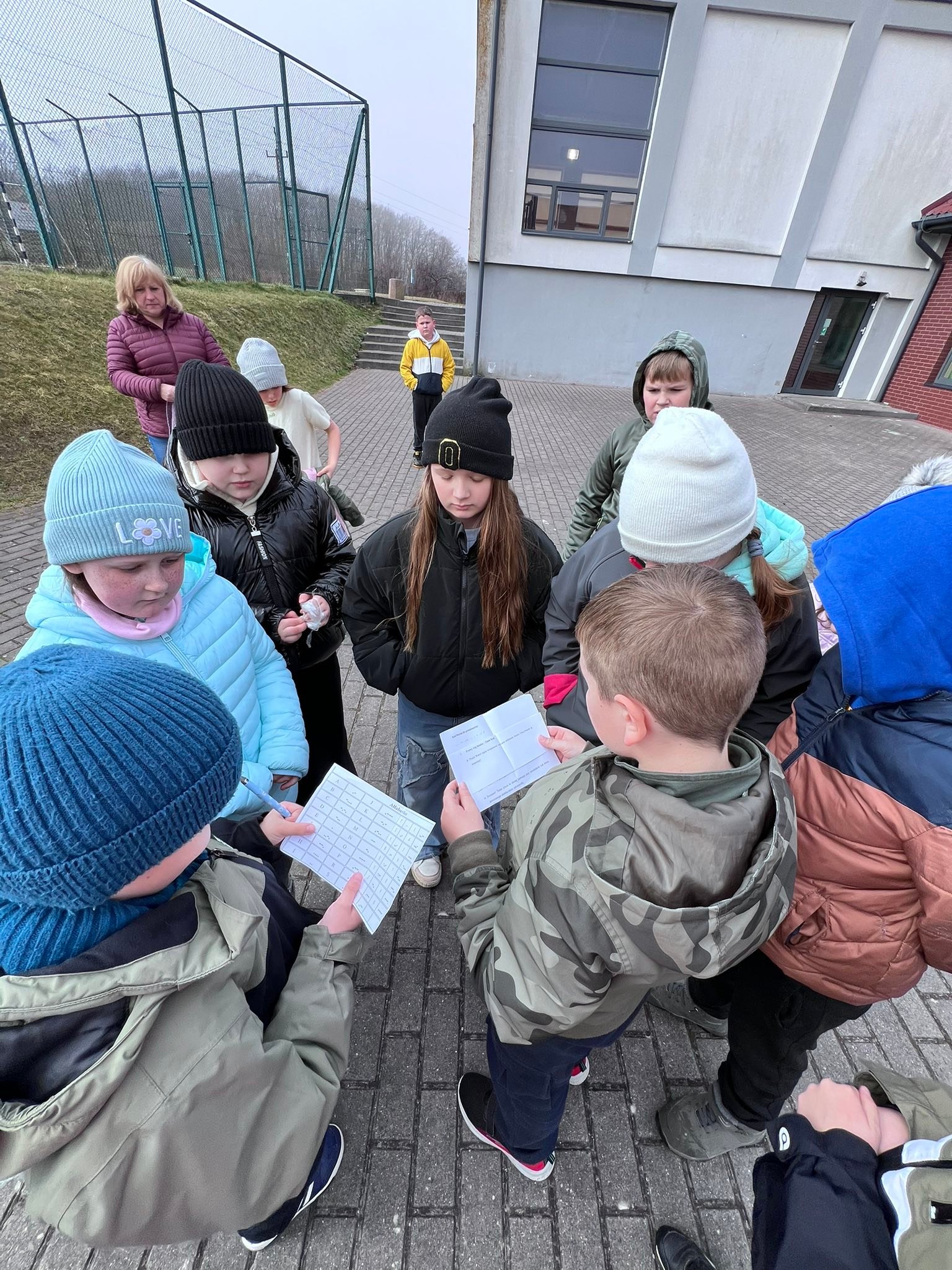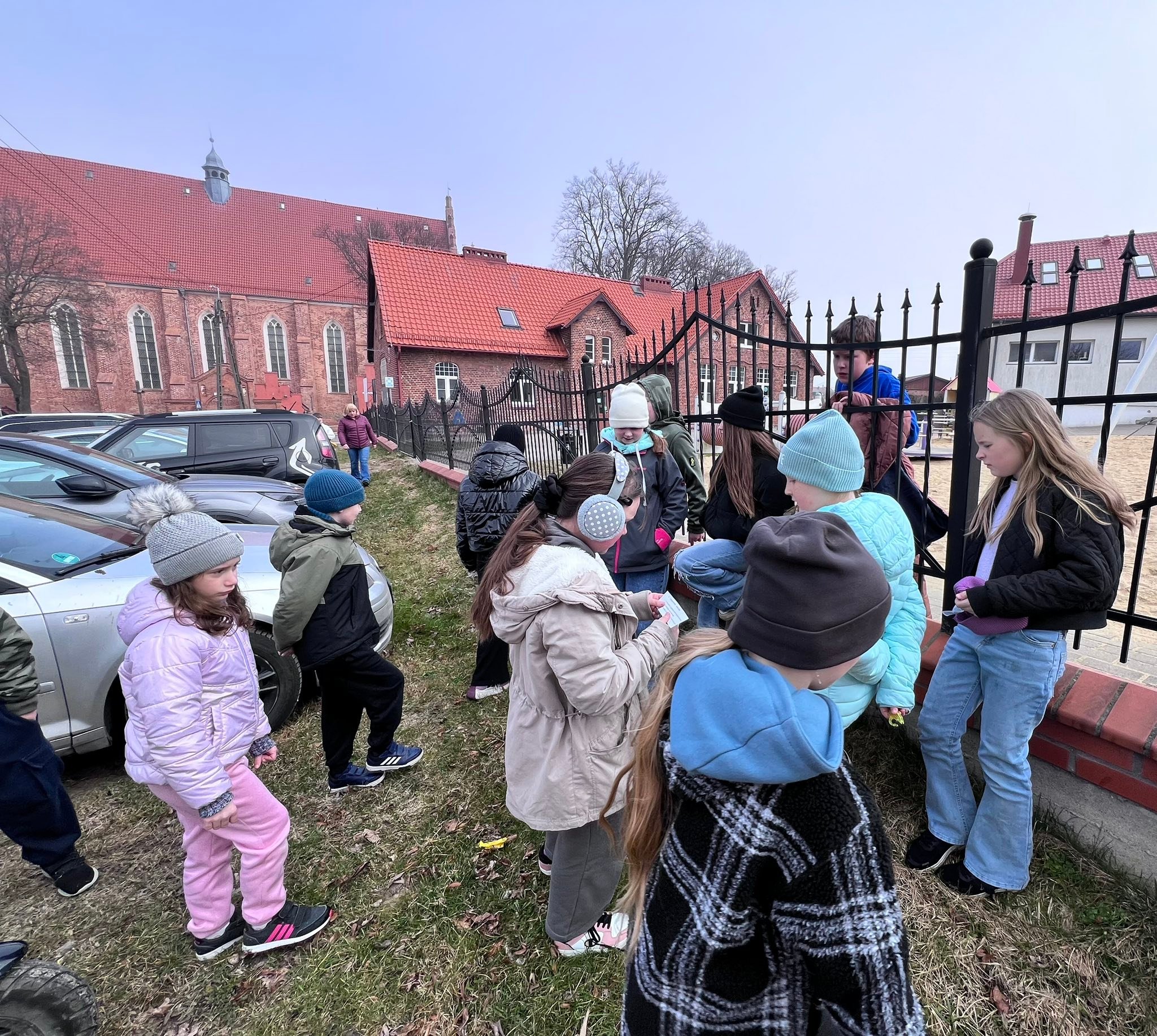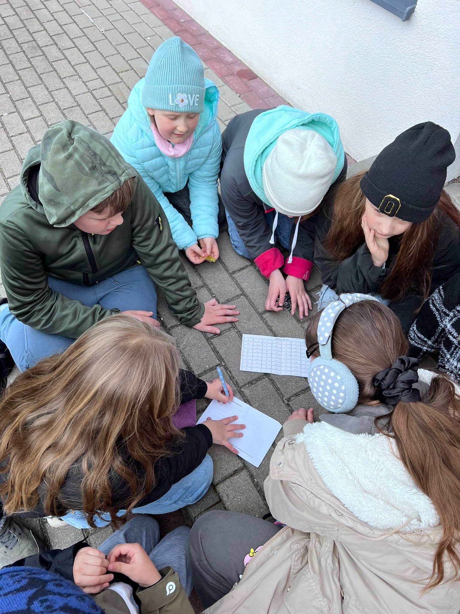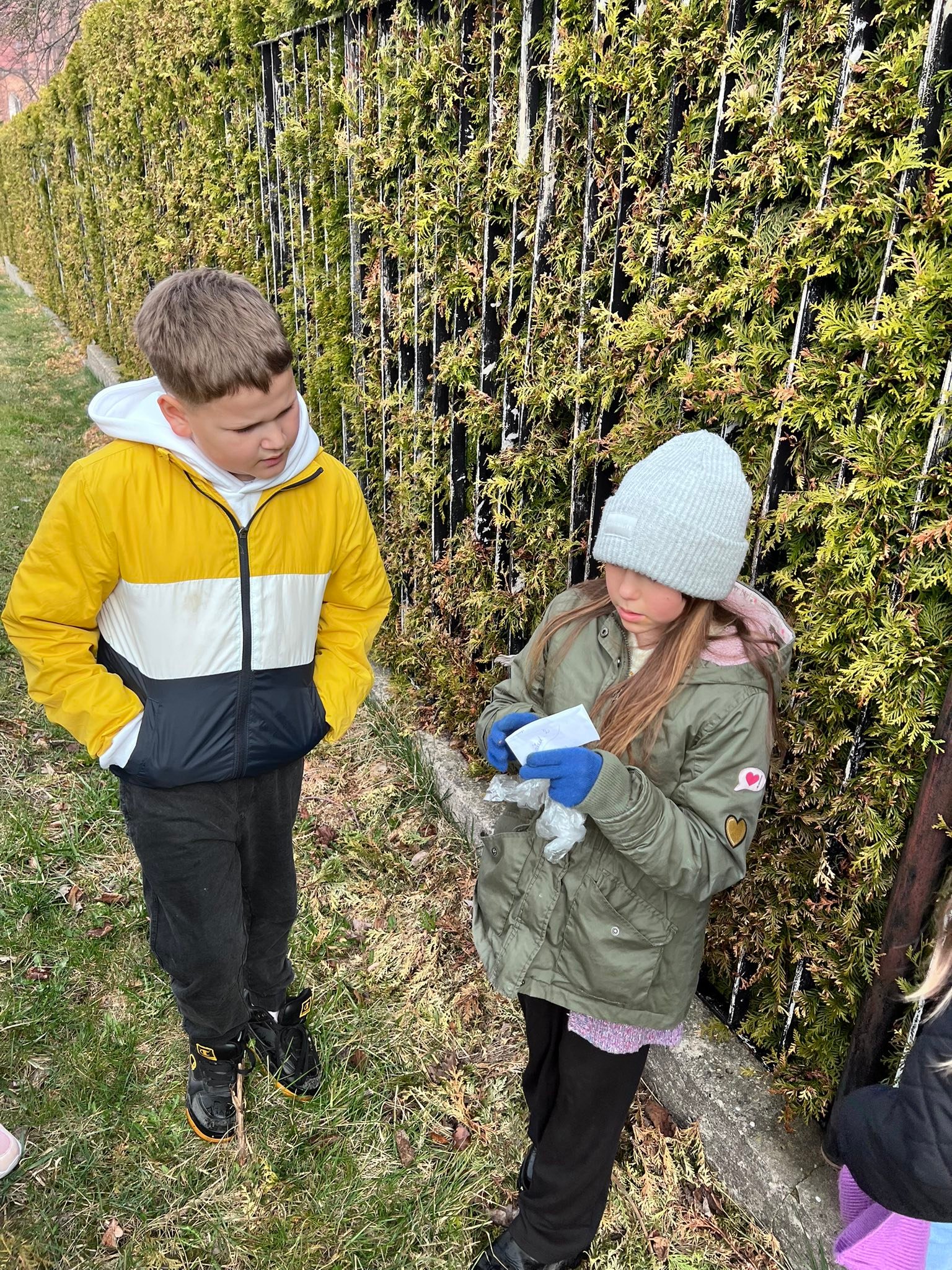 Największą niespodzianką była jednak środa przedświąteczna… Do klasy zawitał Wielkanocny Zajączek! 🐰 Zanim jednak dzieci otrzymały upominki, czekało je nie lada wyzwanie. Specjalny list, dostarczony przez kuriera i odczytany przez Magdę, zaprosił uczniów do udziału w grze terenowej.