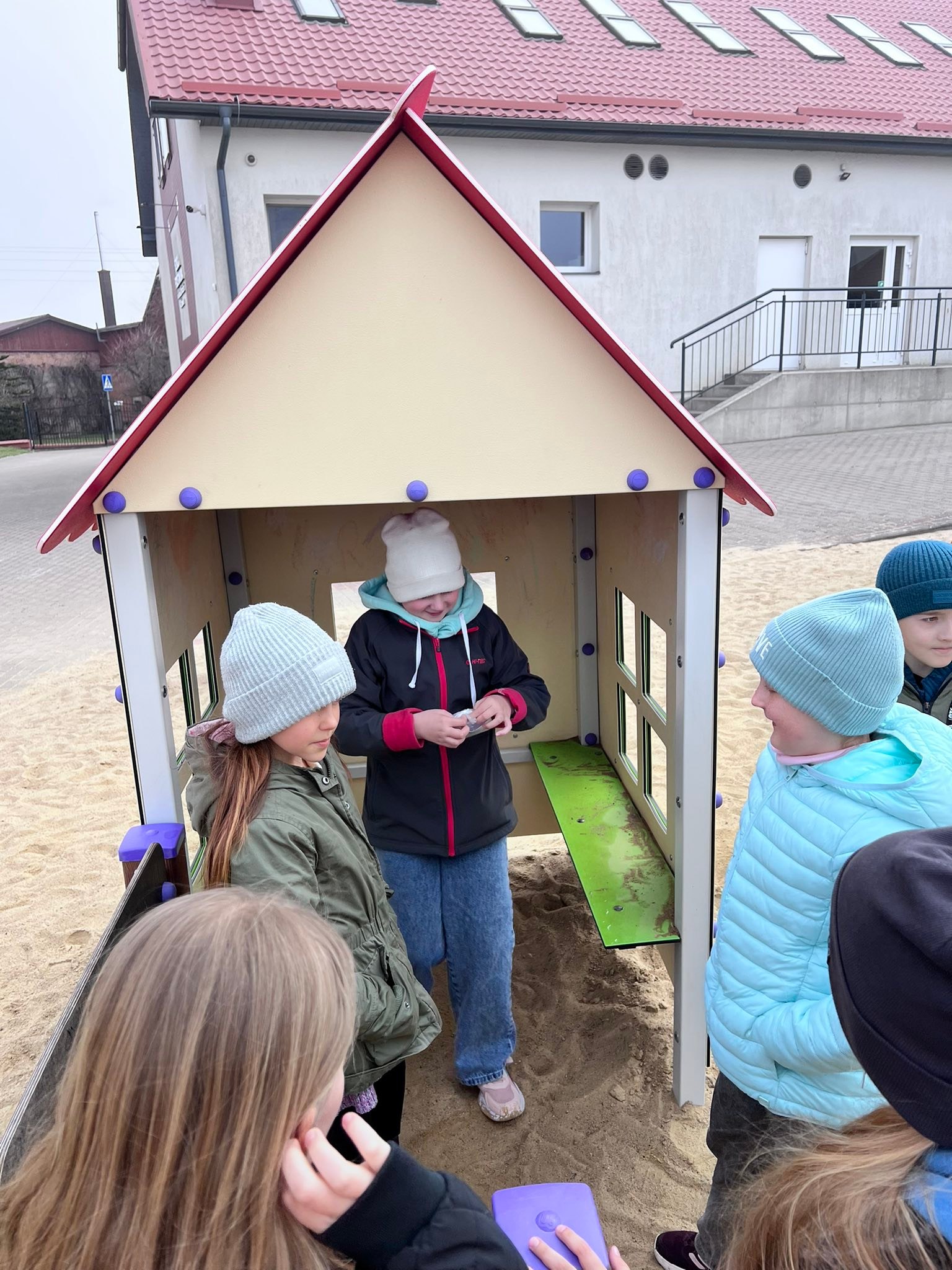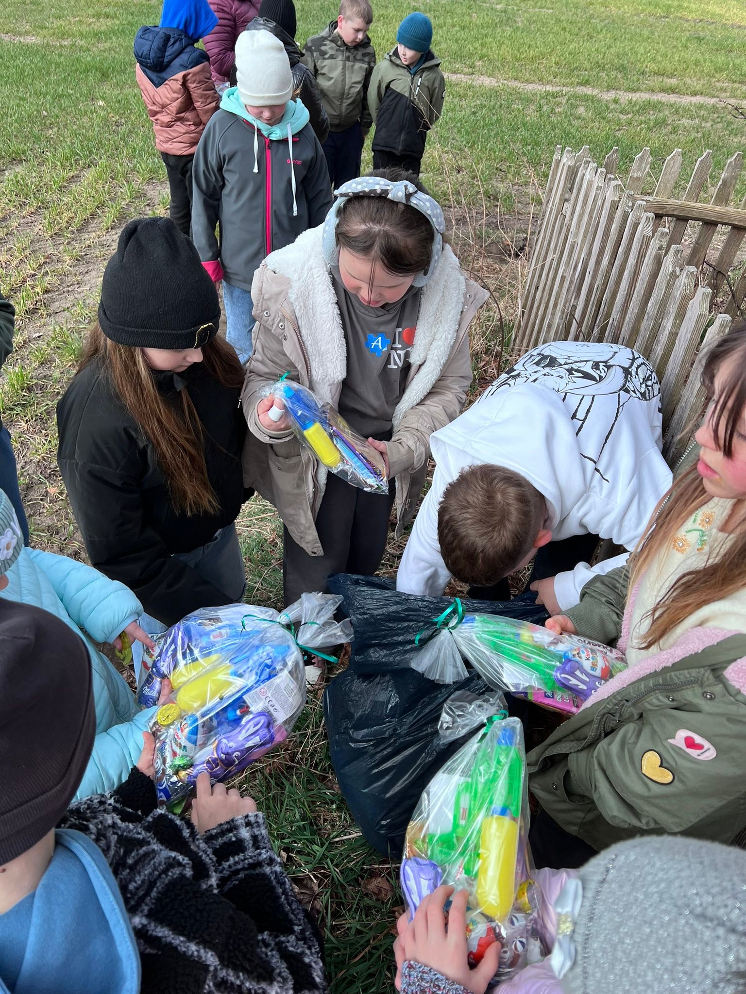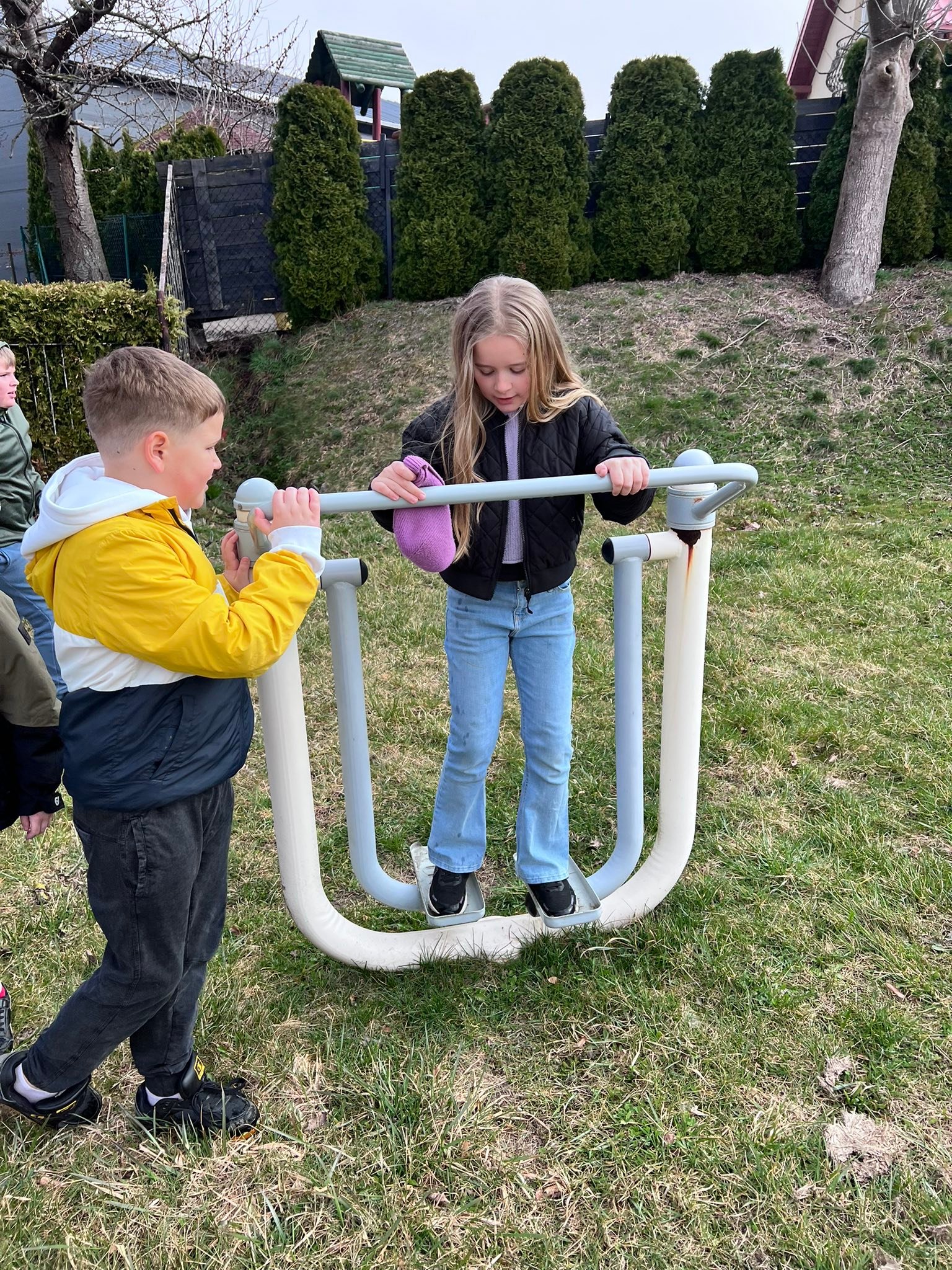 Zajączek przygotował 5 stacji z zadaniami, które wymagały sprytu, siły i współpracy. Pierwsza wskazówka poprowadziła dzieci na plac zabaw – miejsce pełne śmiechu i radości. Tam rozpoczęła się niezwykła przygoda! Uczniowie z ogromnym entuzjazmem rozwiązywali kolejne zadania, by odnaleźć ukryte świąteczne niespodzianki. 🎁🐣🐇