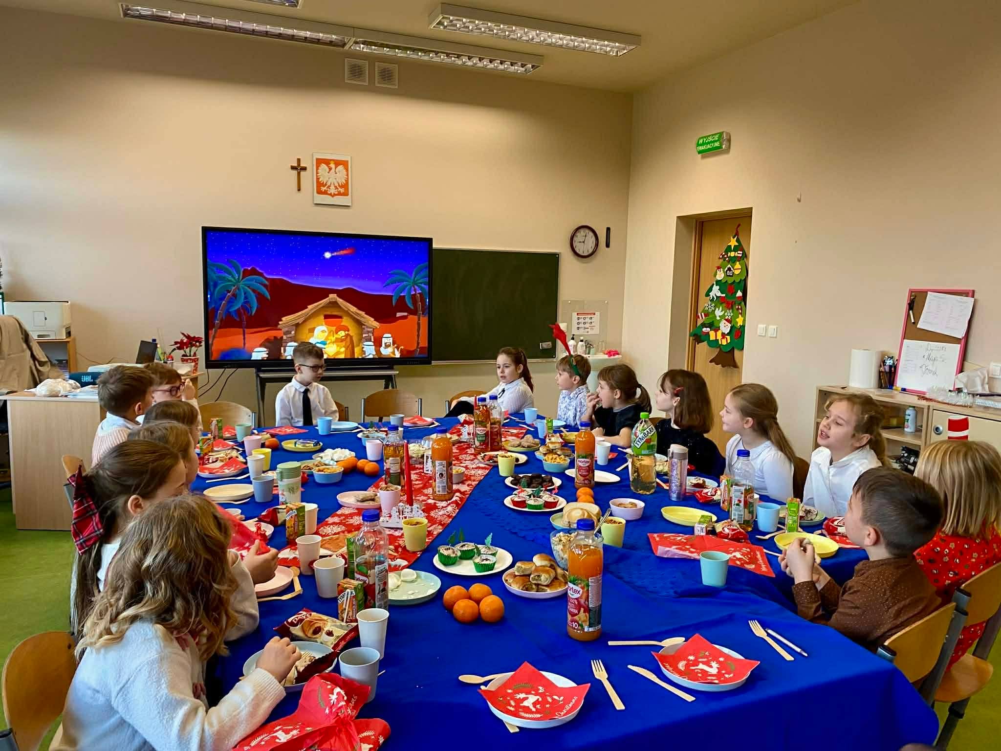 Następnie wspólnie kolędowaliśmy 🎶, a rozmowy o bożonarodzeniowych tradycjach panujących w naszych domach 🕯️ przybliżyły nam piękno i różnorodność świątecznych zwyczajów.