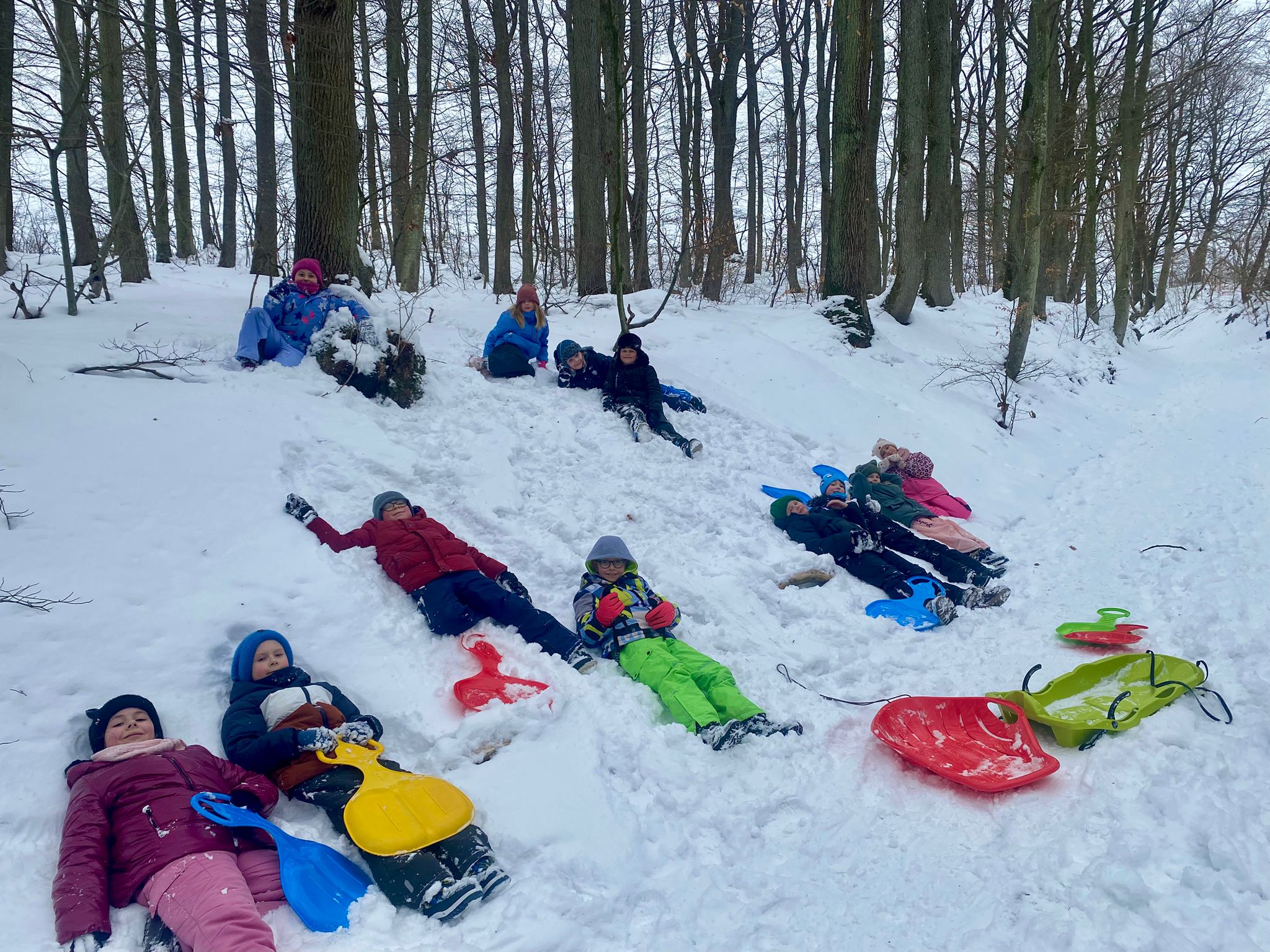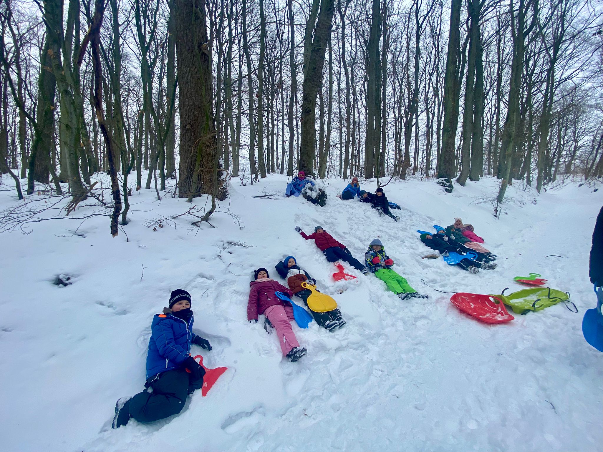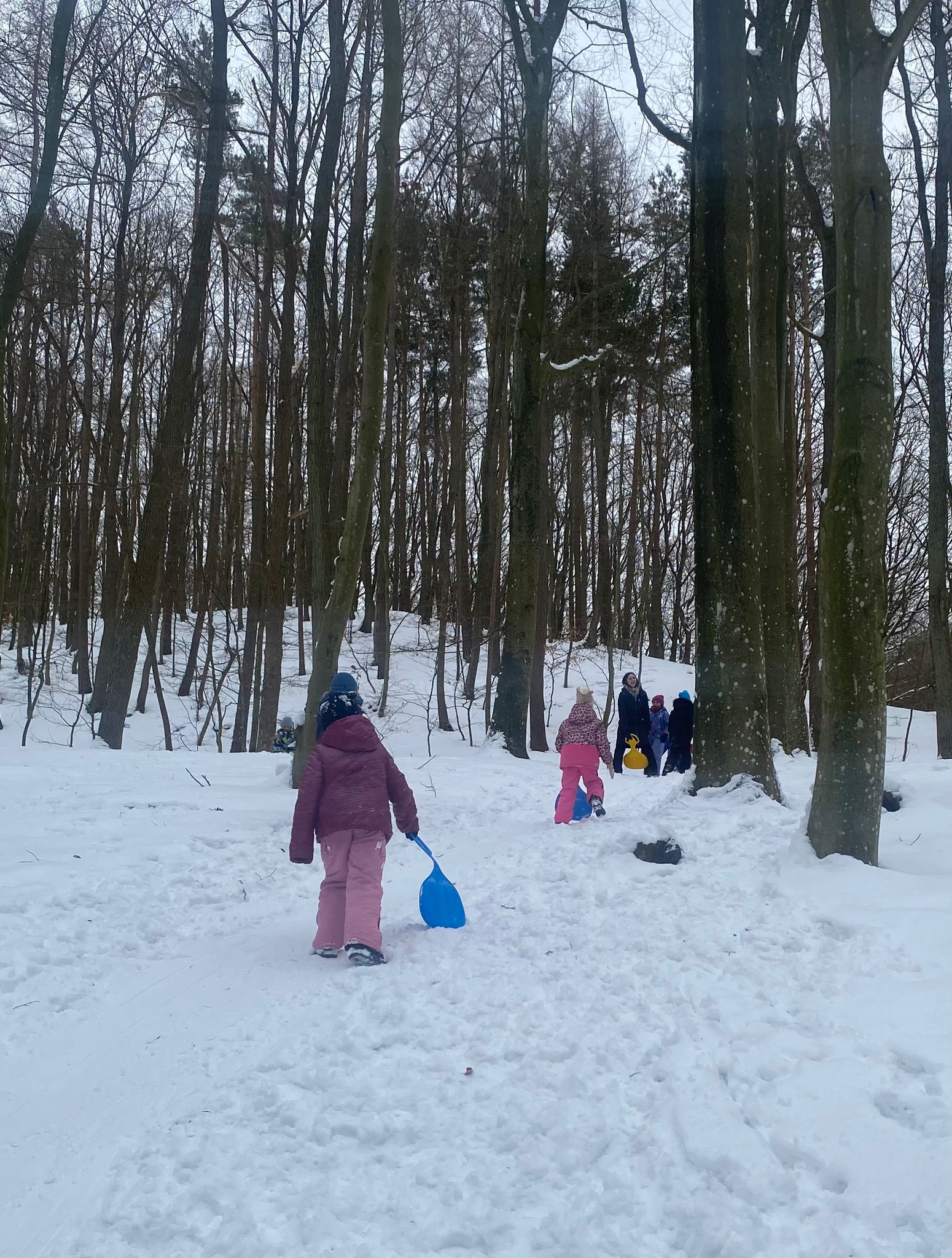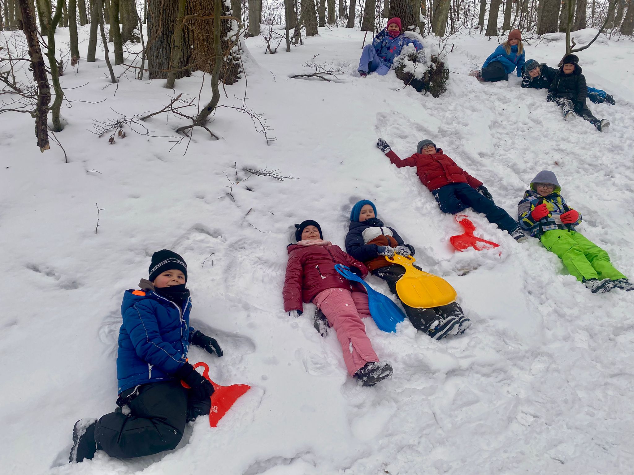 W ramach lekcji wychowania fizycznego klasa 2b dnia 17 lutego wybrała się na górki do lasu, aby aktywnie i radośnie spędzić czas na świeżym powietrzu 🌬️🌞