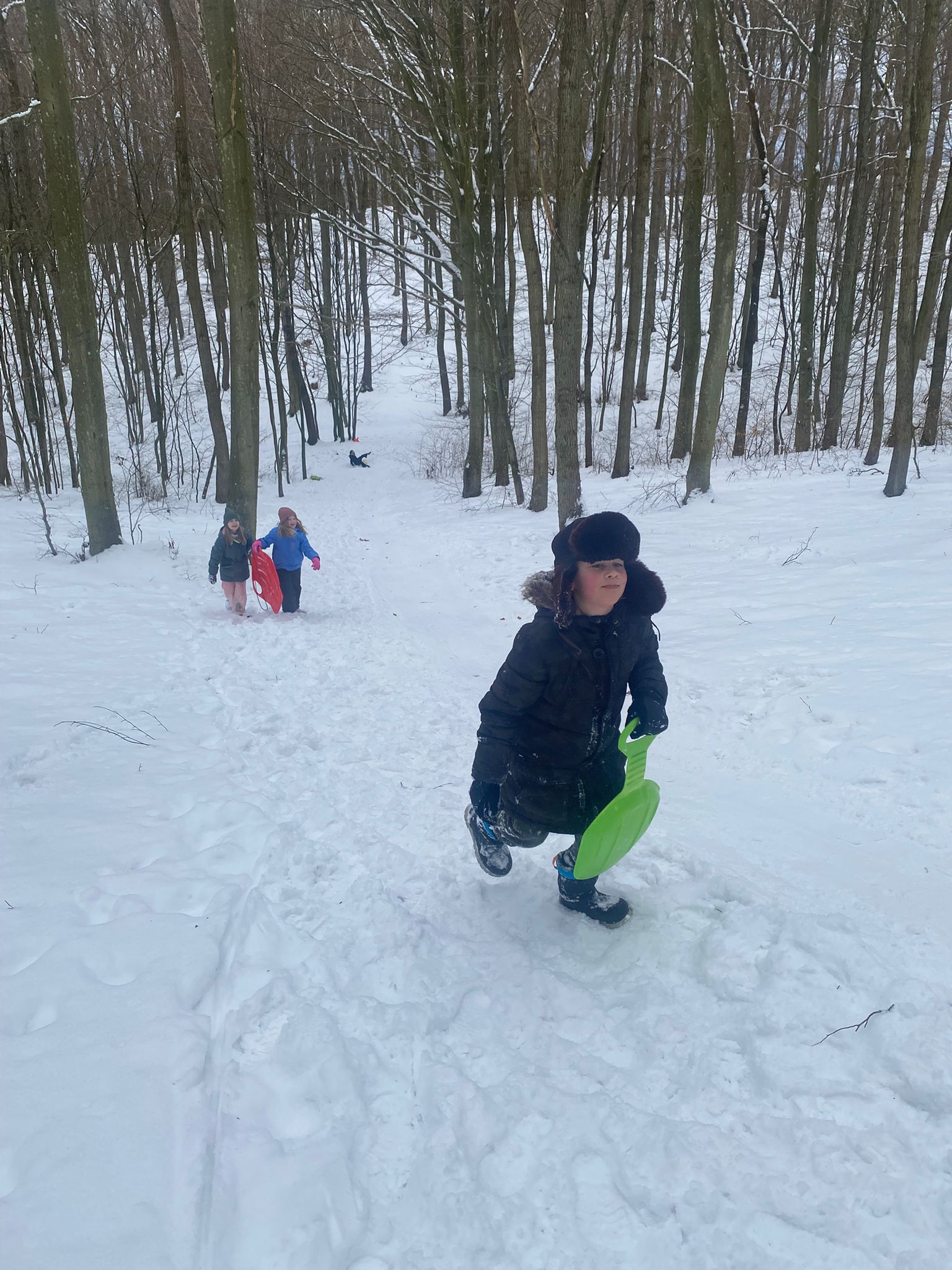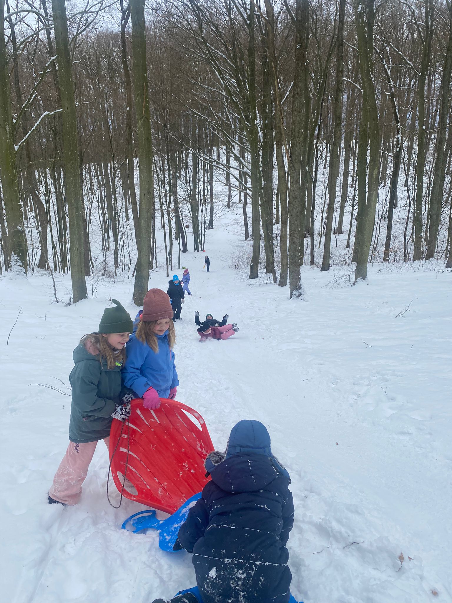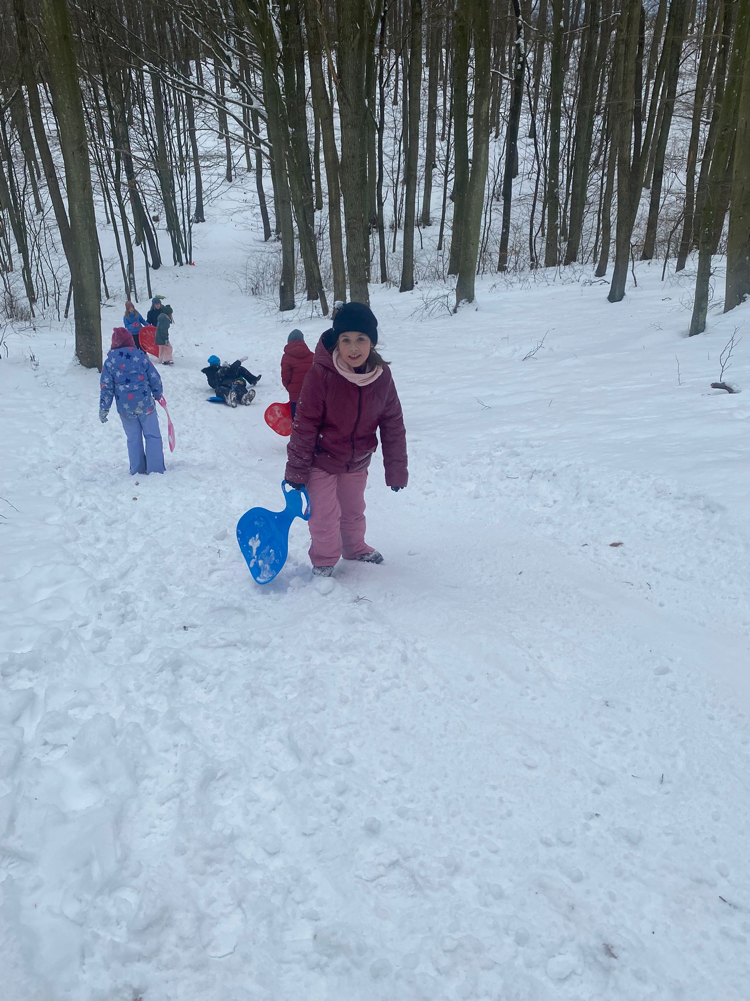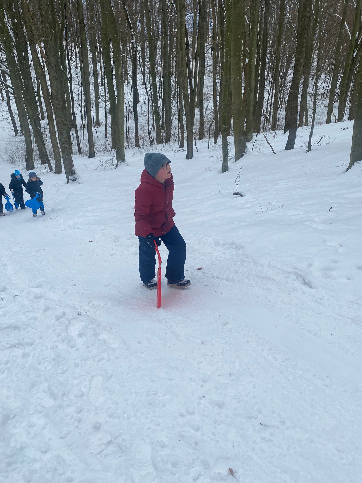 W ramach lekcji wychowania fizycznego klasa 2b dnia 17 lutego wybrała się na górki do lasu, aby aktywnie i radośnie spędzić czas na świeżym powietrzu 🌬️🌞